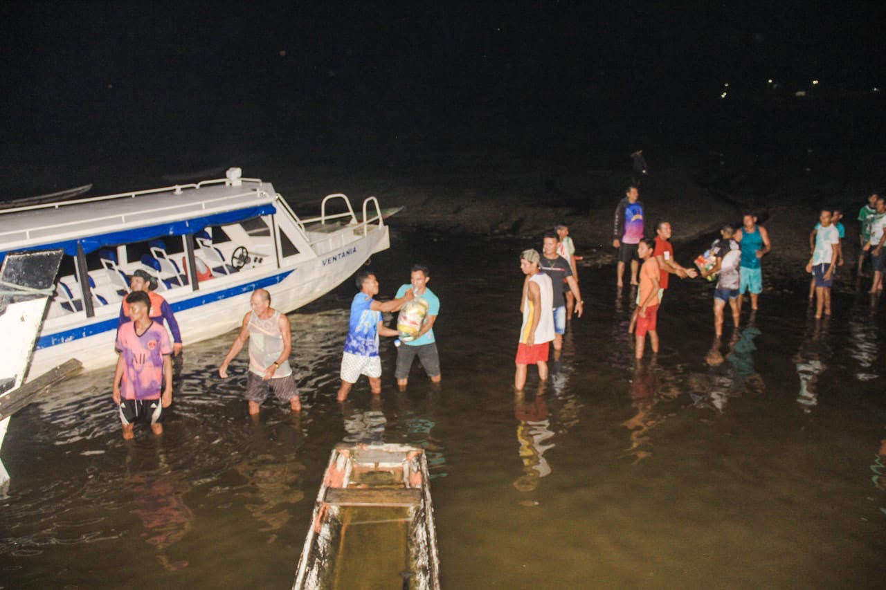 A praia Ponta do Tigre (rio Jacú) e a comunidade São Tomé (rio Uaicurapá) foram um dos locais para o encontro com os ribeirinhos e a realização da Operação Estiagem, da Prefeitura de Parintins, nesta sexta-feira, 27 de outubro. Ao comando do Prefeito Bi Garcia, a ação contou com a presença dos vereadores Alex Garcia (Presidente do Legislativo Municipal), Mateus Assayag, Vanessa Gonçalves, Fernando Menezes, e secretário Tião Teixeira (Produção), secretária Socorrinha Carvalho (Meio Ambiente), além do coordenador da Defesa Civil, Adriano Aguiar, e do vice-presidente do Boi-Bumbá Caprichoso, Diego Mascarenhas.