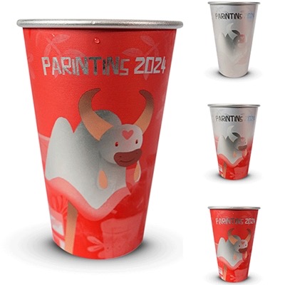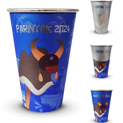 Os copos, com representação dos bois mais amados do Festival de Parintins, mudam a cor para vermelho ou azul com líquido gelado. O brincante ainda leva seu copo com segurança e para qualquer ambiente da festa já que vem acompanhado de um tirante personalizado.