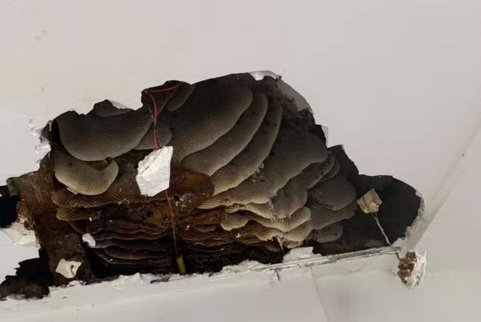 Colmeia gigante no teto da cozinha