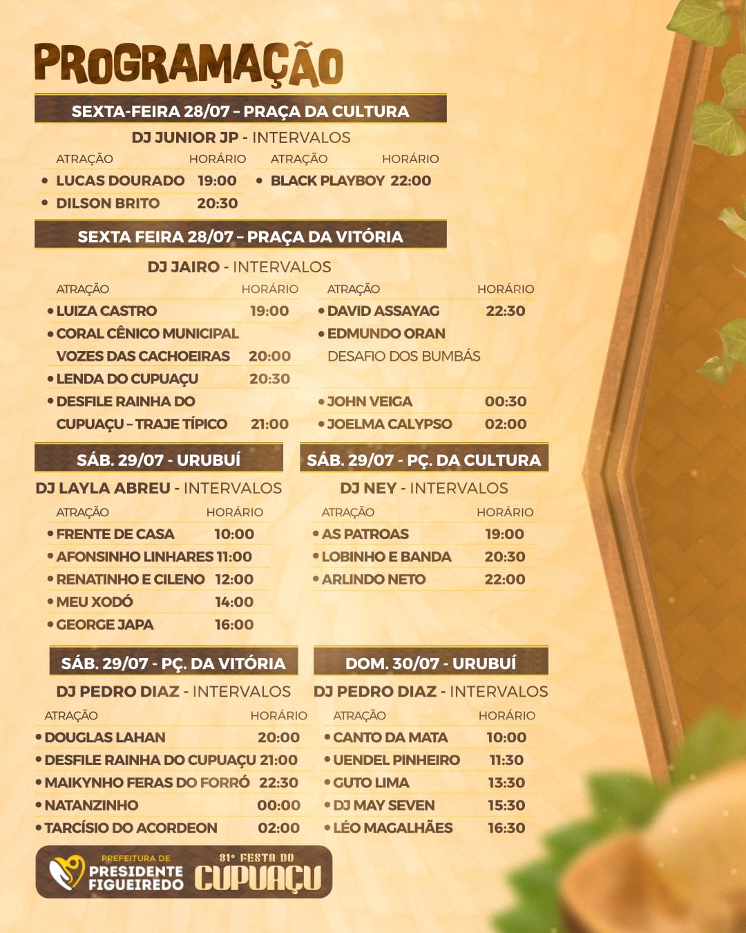 O secretário Municipal de Cultura e Eventos (Semculte), Zandem Ferreira, reforça que os dois eventos, além de apresentar um bom retorno financeiro, contribuem para o fortalecimento da identidade cultural, estimulando o turismo local e promovendo práticas sustentáveis.