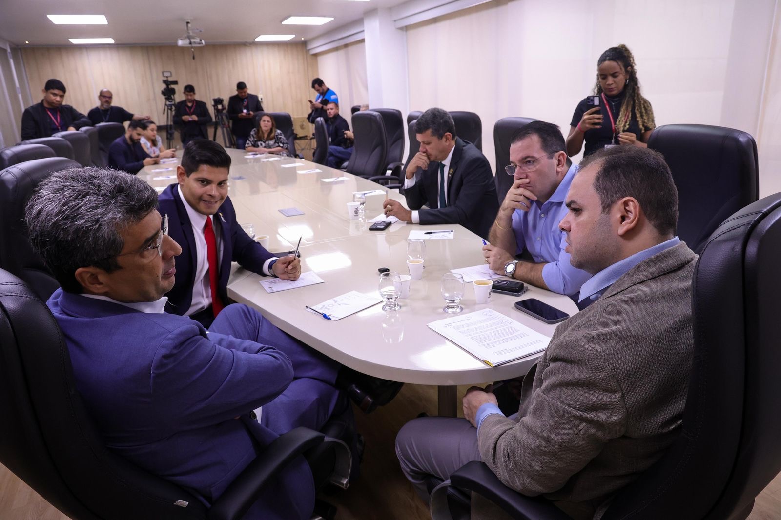 Também participaram da reunião os deputados estaduais Wilker Barreto (Mobiliza), Mário César Filho (UB), Comandante Dan (Podemos), Thiago Abrahim (UB) e Dr. Gomes (Podemos).