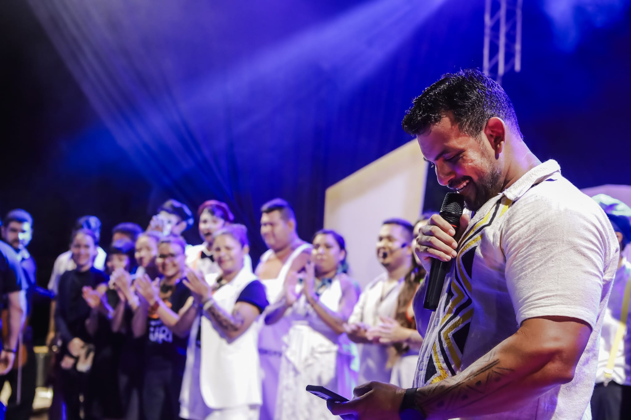 “Estou muito honrado de estar aqui na aldeia Três Unidos. Acho muito louvável que iniciativas como essa aconteçam em comunidades ribeirinhas. E esse lugar, especificamente, é um lugar de muitos talentos. Talentos do arco e flecha, da canoagem e, agora, talentos da atuação também, como a gente pode ver no palco”, frisa Adanilo.