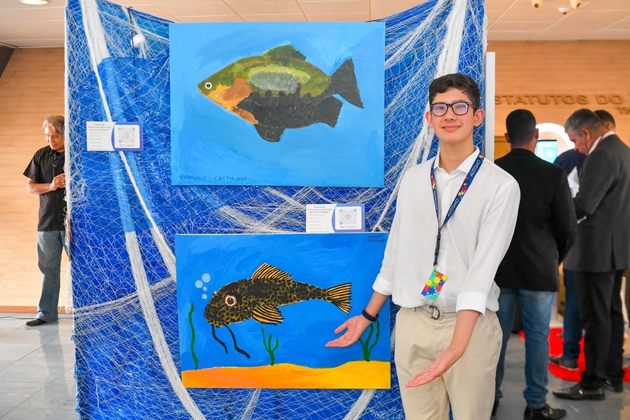 A exposição “Os Peixes da Amazônia” traz pinturas em tela, do artista Vinícius Castilho. O evento realizado pela deputada estadual Dra. Mayara Pinheiro Reis (Republicanos), acontece no hall da Assembleia Legislativa, em alusão ao mês de conscientização sobre o Transtorno do Espectro Autista (TEA).