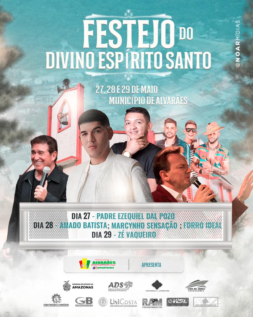 Alvarães está em pleno festejos da tradicional festa do Divino Espirito Santo que ocorre anualmente neste período do mês de maio. Aproveitando a ocasião, o prefeito deverá entregar à população e alguns representantes de comunidades ribeirinhas vários implementos agrícolas como, roçadeiras, botes fluviais (40), tanques para caixa d`água, forno para farinha, motores rabeta, etc.
