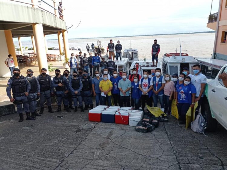 A força-tarefa de vacinação contra Covid é uma realização da Prefeitura de Parintins, por meio da Secretaria de Saúde e Vigilância em Saúde, com apoio da Polícia Militar.