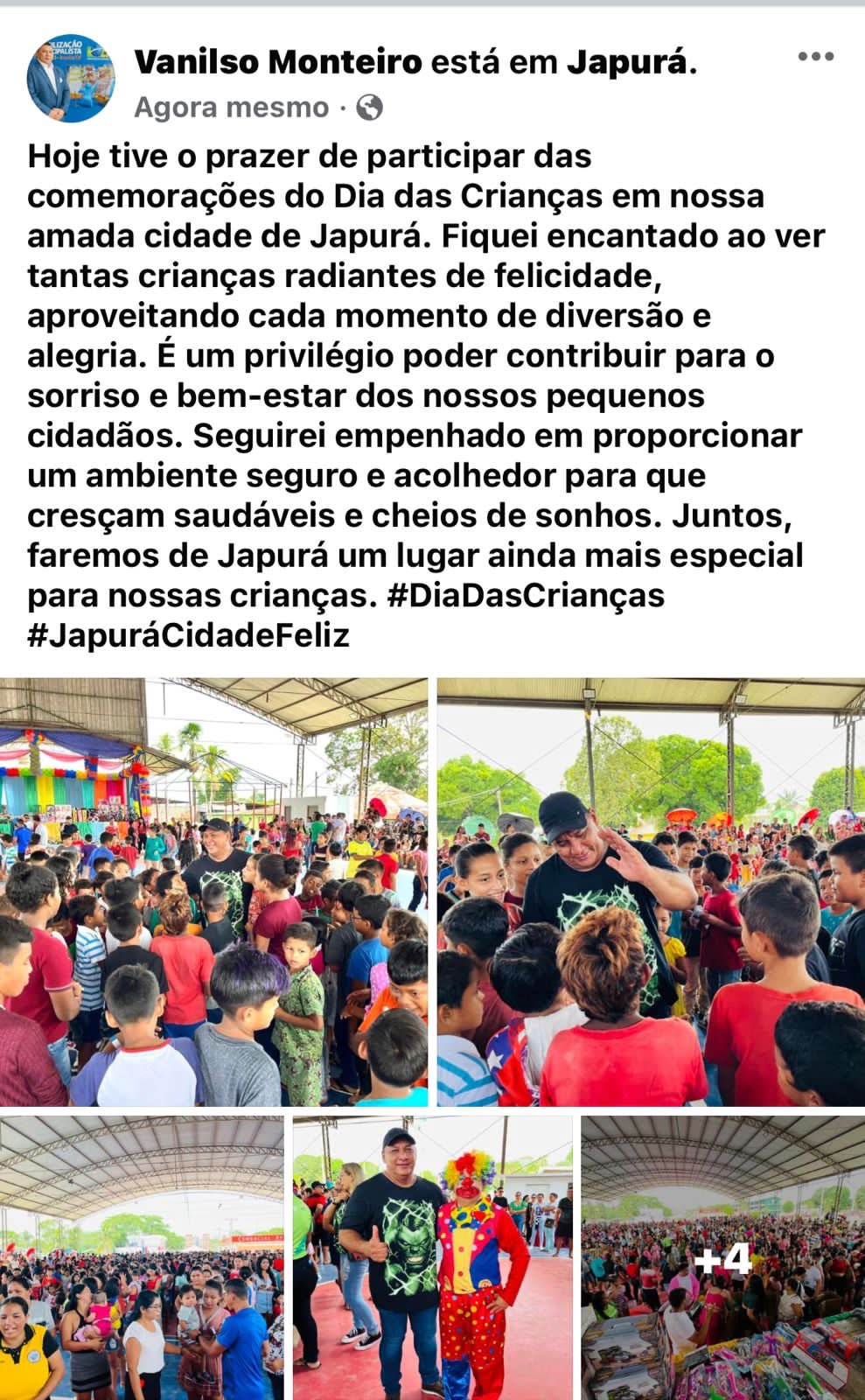 A prefeitura de Japurá (AM), distante 740 quilômetros de Manaus, fez a alegria da criançada no dia de ontem, 12/10, com a entrega de centenas brinquedos em homenagem as comemorações alusivas ao Dia das Crianças.
