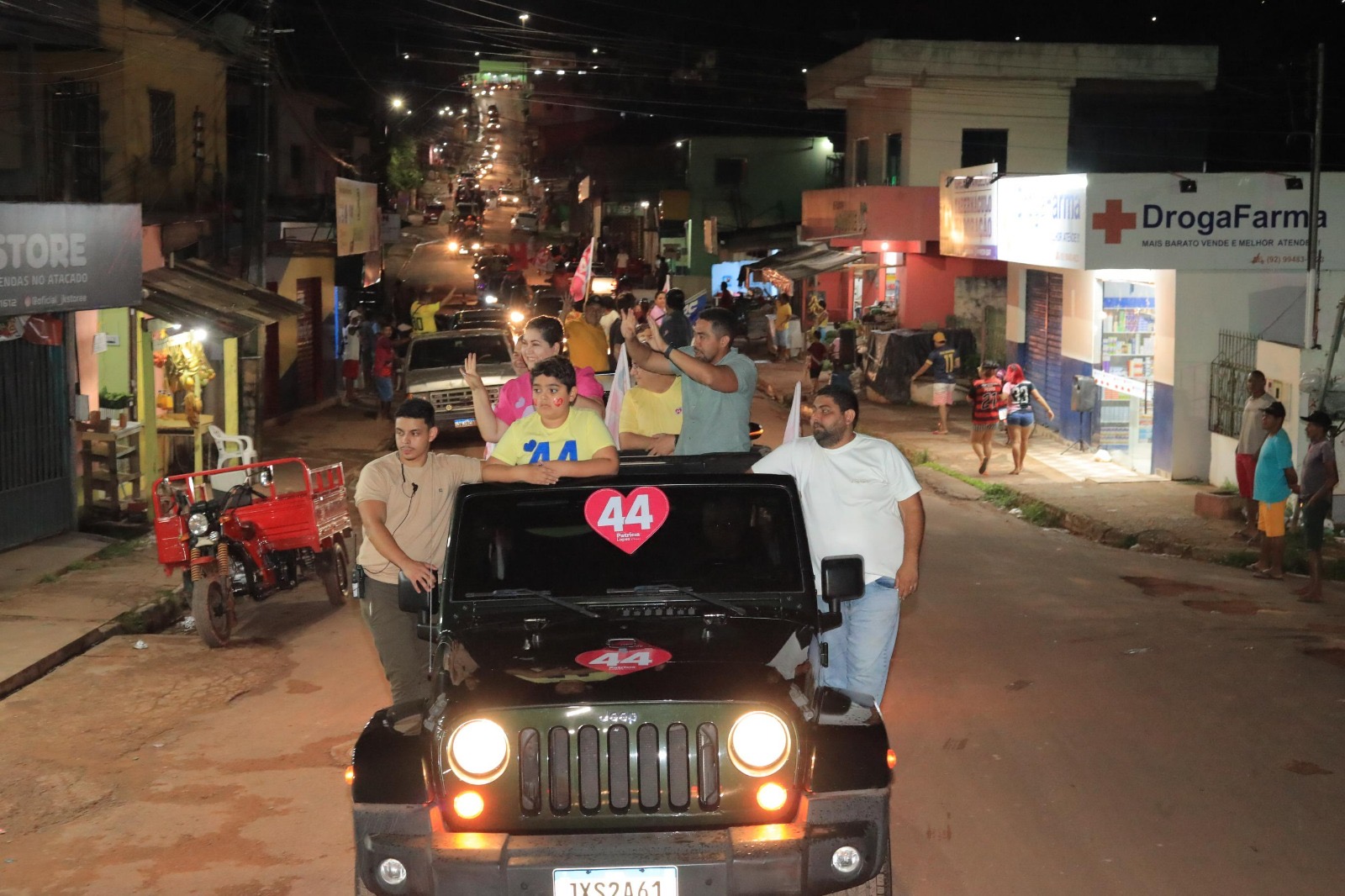 A noite deste sábado (5/10) será lembrada como um marco histórico para Presidente Figueiredo. Uma grande carreata, tida como o maior evento político já realizado no município, encerrou a campanha da prefeita Patrícia Lopes e seu candidato a vice, Ricelli Pontes. Desde às 15h, apoiadores começaram a se concentrar ao longo da avenida Amazonino Mendes (antiga Onça Pintada) e, por volta das 18h, a fila de veículos já se estendia pela rodovia AM 240 (Estrada de Balbina). Nem mesmo a chuva que caiu no início da tarde conseguiu desanimar os participantes.