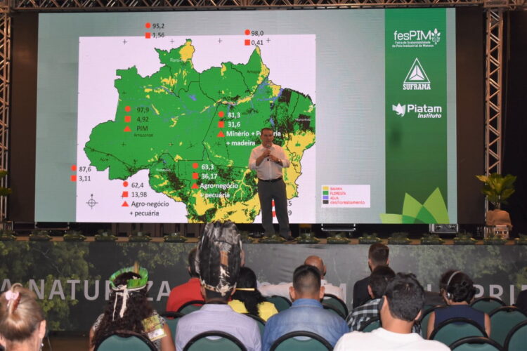 O presidente do Instituto de Inteligência Socioambiental Estratégica da Amazônia (Piatam), Alexandre Rivas, deu início à programação de palestras da fesPIM, abordando instrumentos econômicos para a proteção da Amazônia – o caso do Polo Industrial de Manaus. Rivas apresentou o estudo feito em 2009, demandado pela Suframa com financiamento da Nokia, que teve como objetivo analisar se havia alguma relação entre o nível de desmatamento no Amazonas e o Polo Industrial de Manaus (PIM), que representa a principal atividade econômica do Estado.