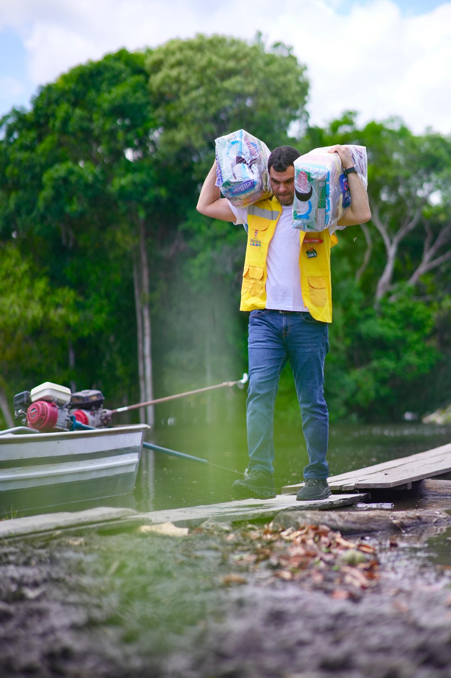 Durante a visita, Saullo esteve ao lado da presidente do Fundo Manaus Solidária (FMS), Viviane Lira, e participou da entrega de cestas básicas, kits de higiene e limpeza para 60 famílias da comunidade. A iniciativa reforça o compromisso da gestão do prefeito David Almeida com as populações mais vulneráveis, especialmente as ribeirinhas que enfrentam os efeitos diretos da subida do rio.