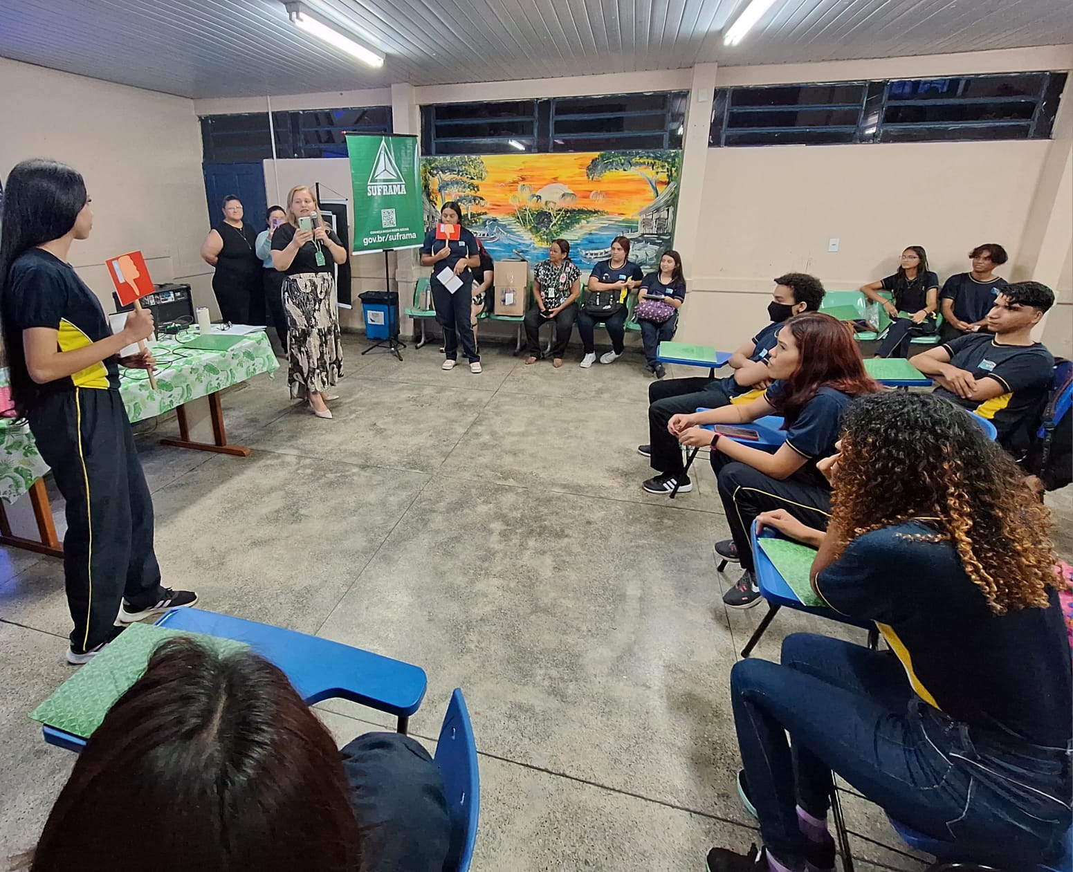 A segunda edição do projeto “Suframa nas Escolas” em 2023 foi realizada nesta terça-feira (19), no bairro Compensa 1, zona Oeste de Manaus. A atividade reuniu aproximadamente 70 alunos finalistas do ensino médio da Escola Estadual Padre Pedro Gislandy, considerada a pioneira, entre as instituições de ensino implantadas naquela área da cidade, mais precisamente no dia 12 de maio de 1973.